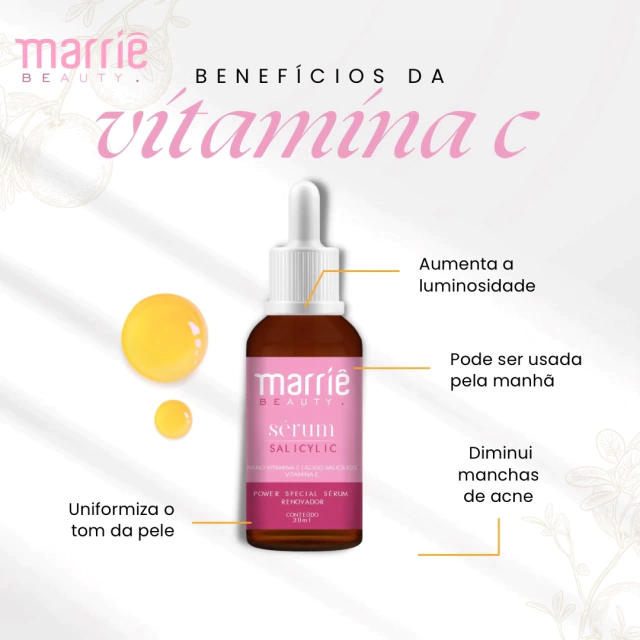O Sérum Salicylic contém ácido salicílico, que age contra a oleosidade da pele, e as Vitaminas C e E, potentes antioxidantes, que apresentam um efeito iluminador e protegem contra os radicais livres. Com esse blend de ativos, o sérum previne o envelhecimento precoce, regulariza a textura da pele, controla a oleosidade e diminui a aparência dos poros.
